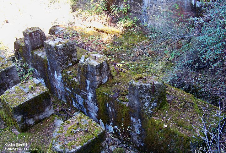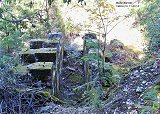 2.-3. Nearby on the main are the remains of a water tank. Not much left but a few burned timbers and long bolts.