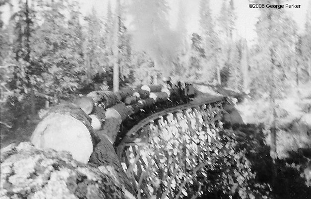 We were on a rather steep grade. The string of empty cars was parked above us. As a car was needed, we would detach it from the string, and controlling it with the hand brake, would roll it down to the "brow log" for loading. After the car was loaded we would drop it down the grade and attach it to the previous loaded cars and make sure we had brakes set on a few of them. We had loaded all our empties and Melvin and I were through for the day. We sat on the brow log and talked, while the crew above were still unhooking the cats and decking the logs in a neat pile for future loading.