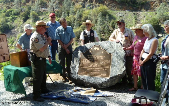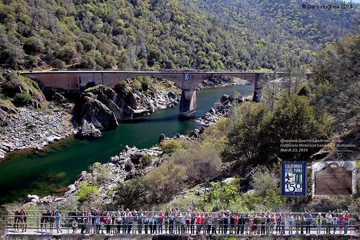 On Sunday March 23rd, the California Historical Landmark (CHL) dedication was held for the Mt. Quarries Railroad (MQRR) Bridge in the Auburn State Recreation Area. 65 participants from 15 agencies and organizations attended the dedication, which was also a California State Parks 150th Legacy event. As a part of the 2014 Commemoration of California State Parks 150th Anniversary, the landmark dedication was the second in a series that will take place in various state parks around California over the next nine months. The nomination application was submitted by the Placer County Historical Foundation, who also help fund the plaque costs.