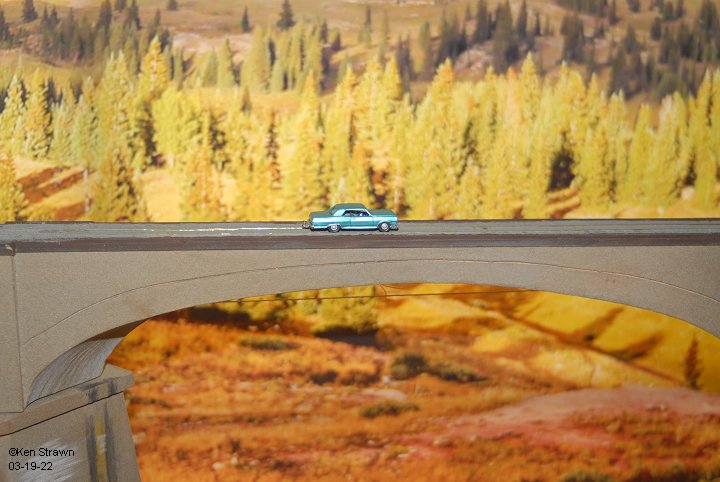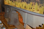 1.-2. Ken Strawn's HO scale model of "No Hands" bridge under construction July 2021.