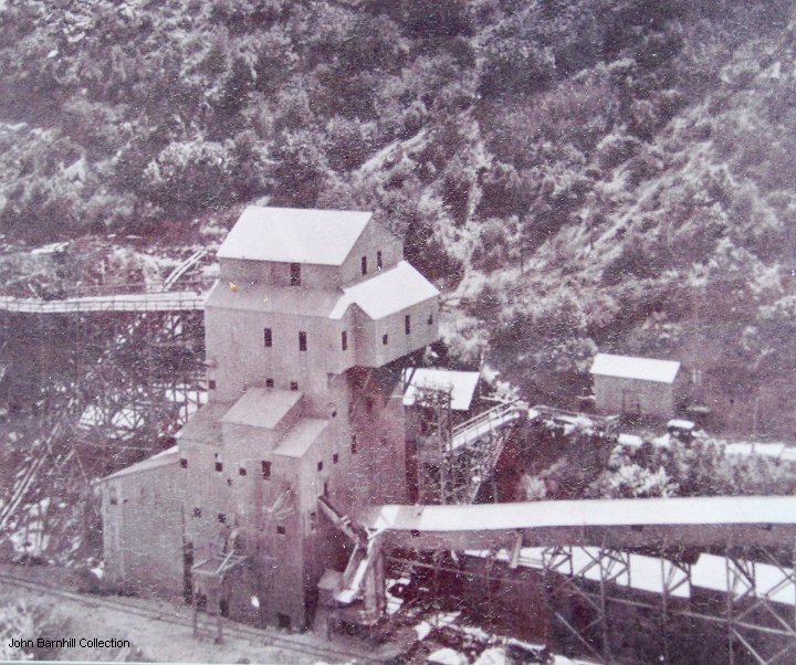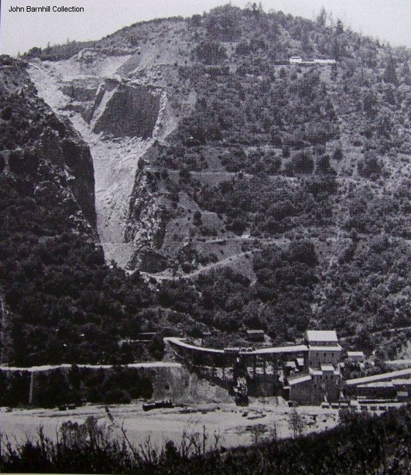 The limestone was loaded into ore cars inside and brought to the crusher/loadout on a curved trestle.
