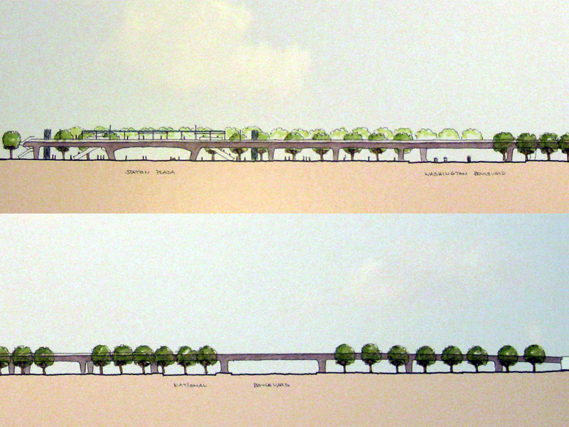 7/16/08 This Expo Authority image shows the aerial structure from the Culver City station across Washington and National.