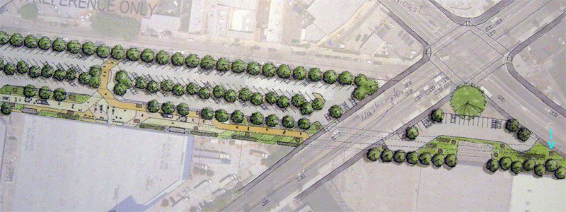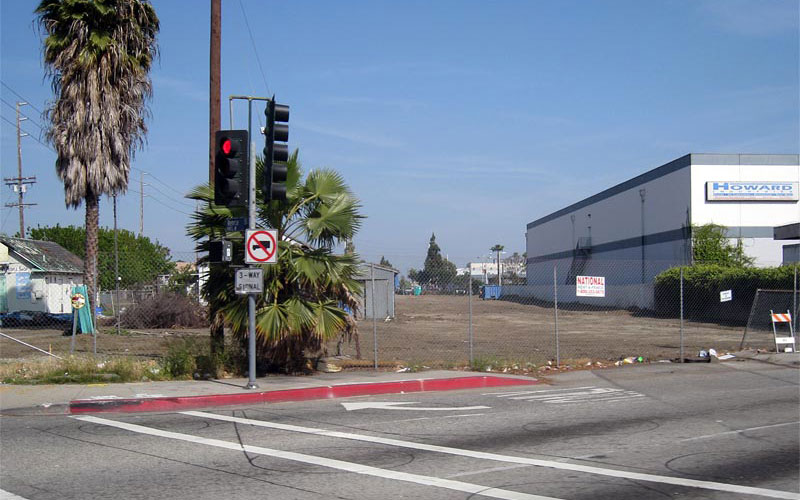 4/4/08 The Culver City station site, seen from Venice and Robertson, is cleared for construction staging. The old track (bottom photo) was at the far right. In November 2007 the Metro Board approved programming $50 million in Proposition 1B funds for the Culver City aerial station, and authorized staff to apply for these funds so this station could be part of Expo phase 1. Caltrans approved the the $50 million funding in March 2008.