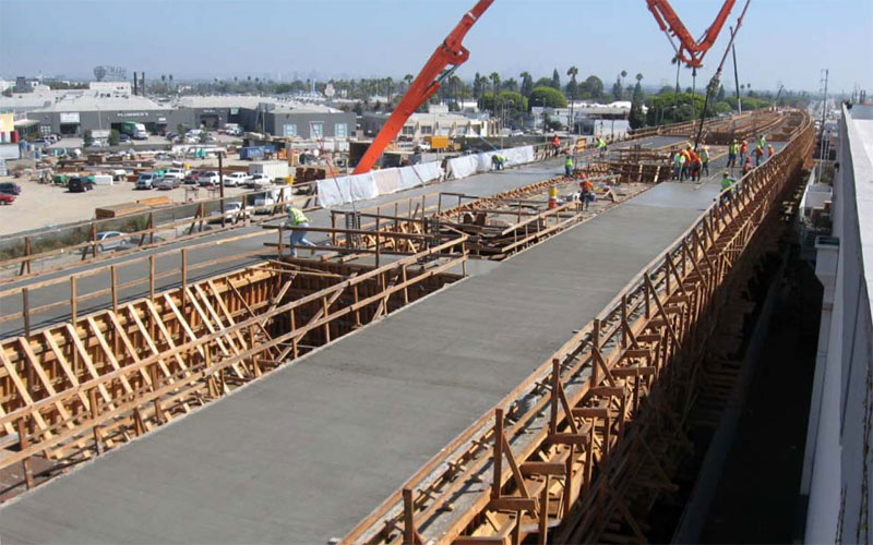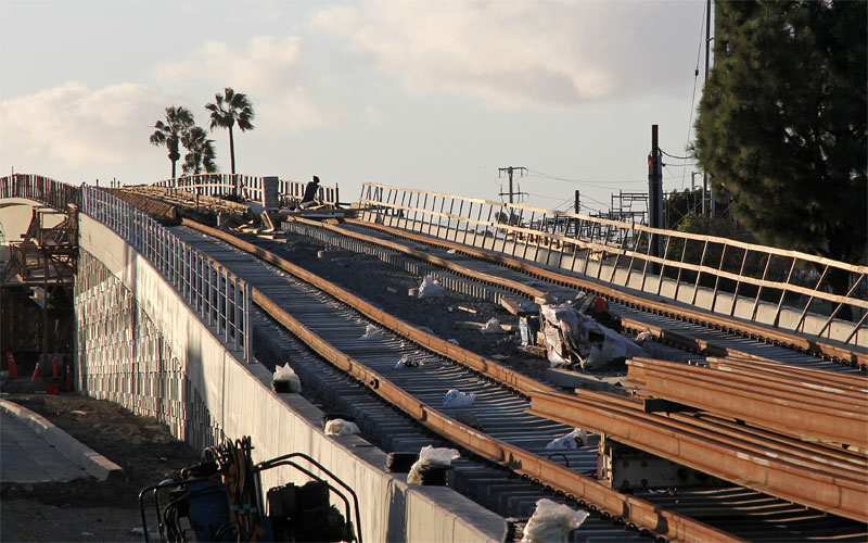 8/27/10 — The track slabs were poured yesterday on the MSE ramp at National. Will there be rails on the Culver City aerial by the end of this year?