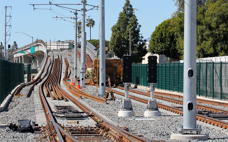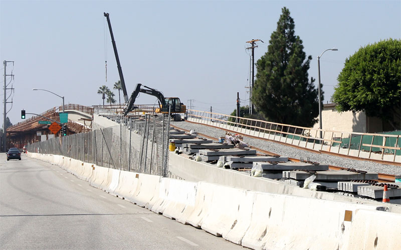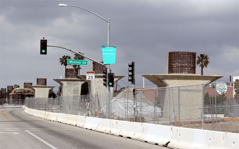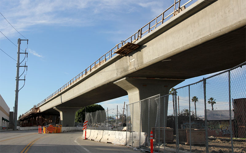 2/23/10 You can see multiple pairs of columns for the aerial Culver City station looking west of Washington.