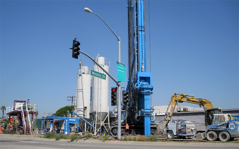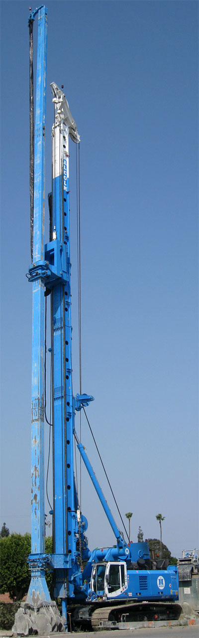 8/16/09 A giant Malcolm Drilling BG-40 rig has been assembled on the right-of-way east of the National crossing, to drill the footing holes for the aerial structure in Culver City.