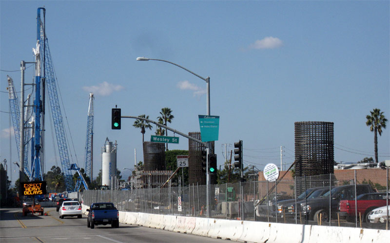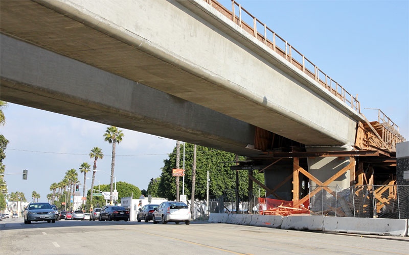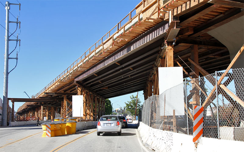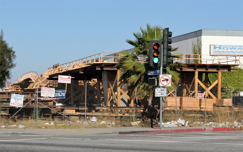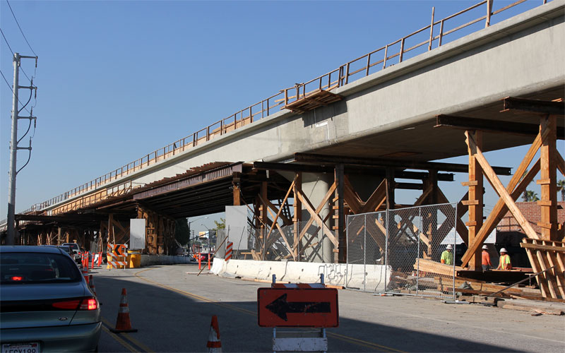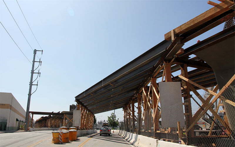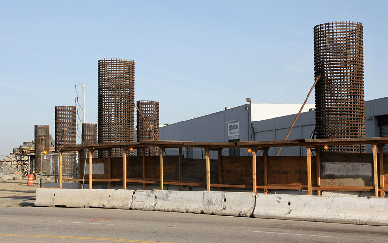 7/7/10 — Two weeks later finds sides up on the Culver City forms. Falsework hasn't yet spanned Washington and National Boulevards.