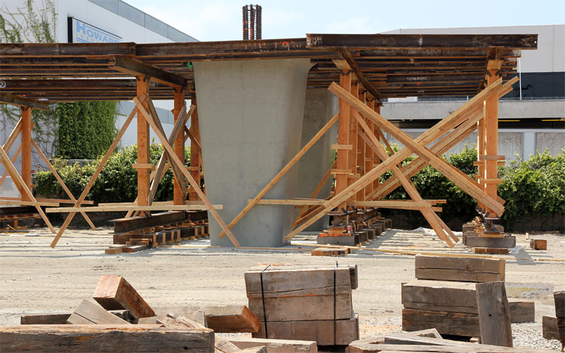 6/10/10 Falsework is beginning on the separate contract for the Culver City aerial station superstructure.