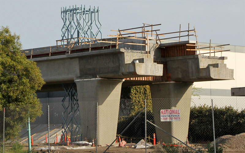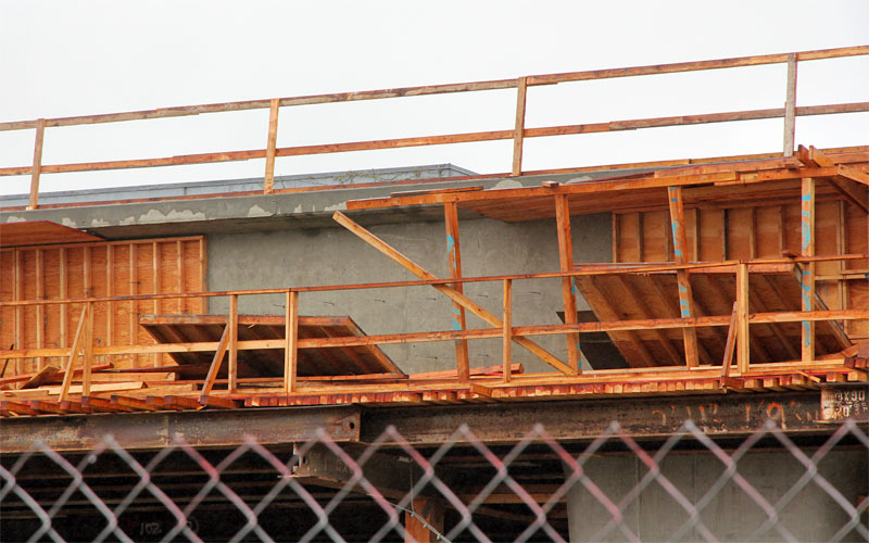11/2/10 — Most of the side forms are off the Culver City aerial. Looking west on National here, it shouldn't be long before the falsework comes down.