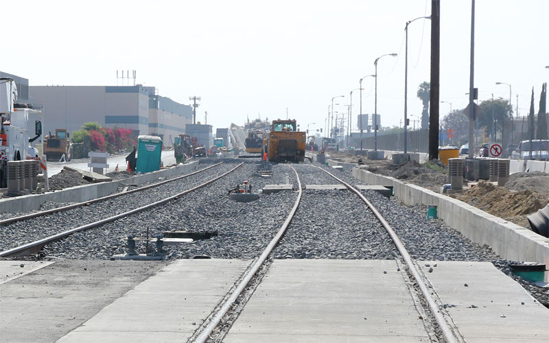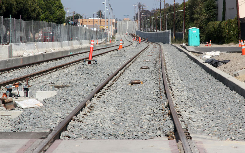 6/27/10 Track is finished across the Hauser grade crossing. Above is the view east toward the La Brea bridge; below is west toward La Cienega.