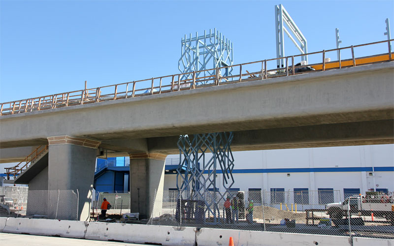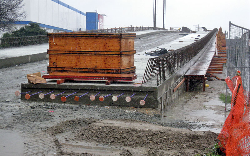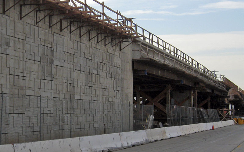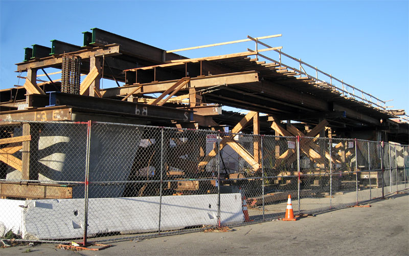 2/5/10 The track slabs are finished on the eastern La Brea ramp, with rebar for the parapet walls.