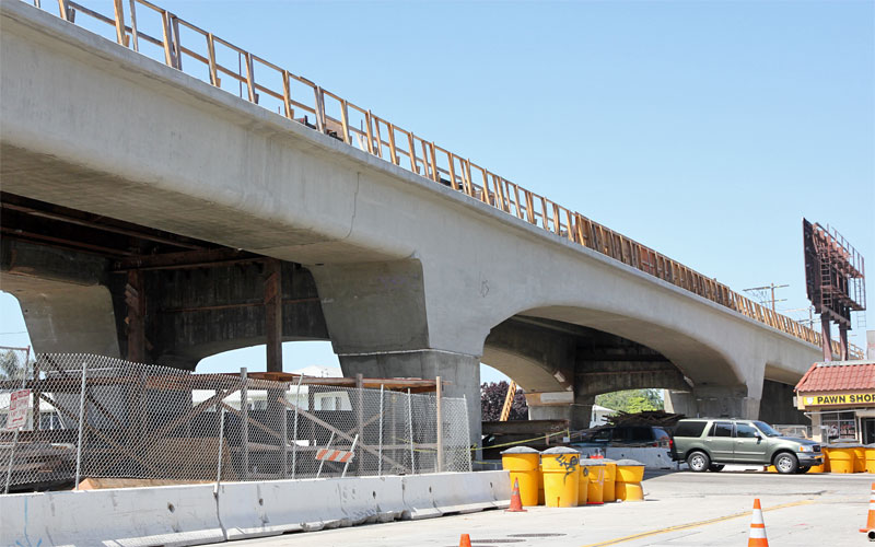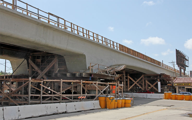 2/28/10 The falsework on the east side of La Brea was removed last week, showing more how the finished bridge will look.