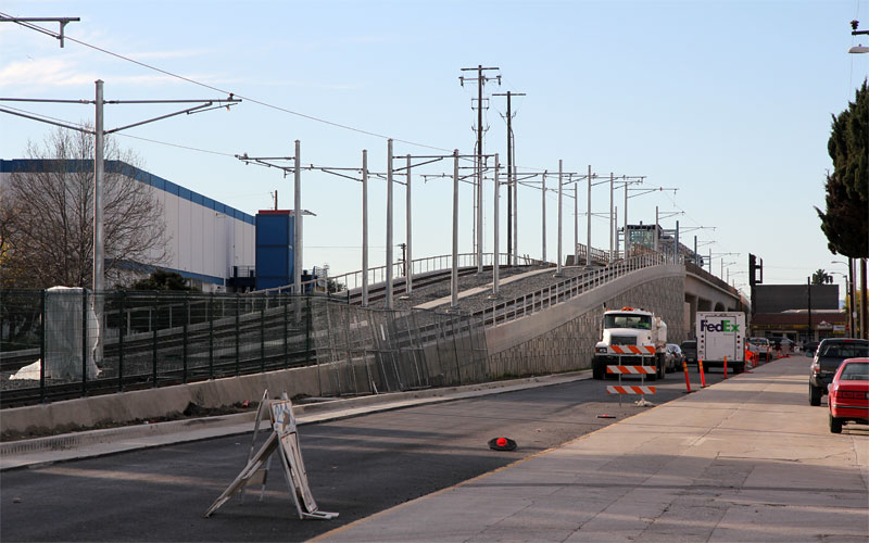 1/21/11 All catenary wires are complete across the La Bridge. Compare the view above with previous photos below on 2/18/10, 11/20/09, 10/6/09, and the simulation image.