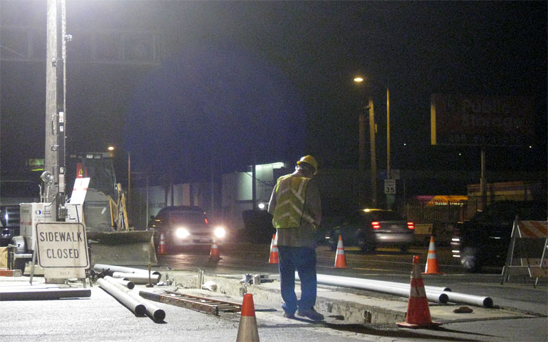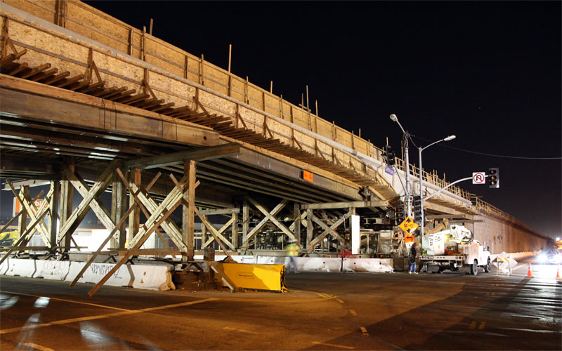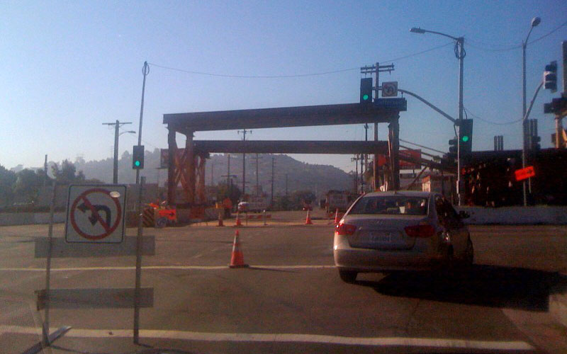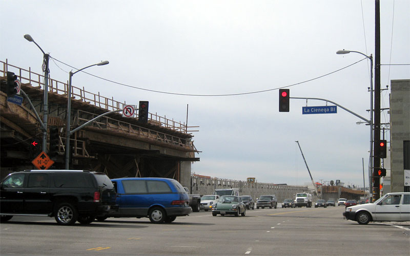 10/21/09 La Cienega was closed tonight for installation of more falsework steel.