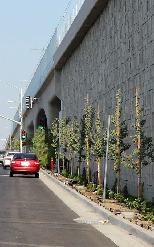 7/27/11 — Two kinds of trees and low plantings make the retaining wall west of La Cienega much greener.