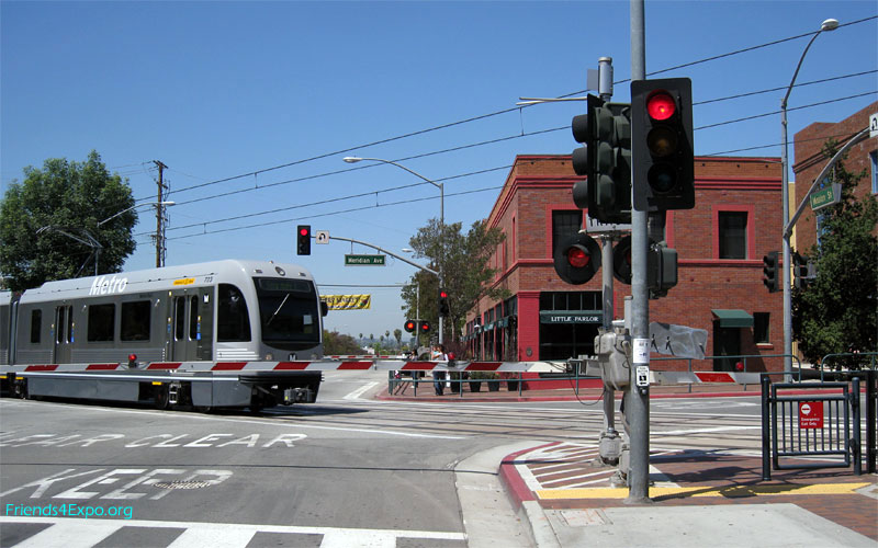 Access to rail transit enhances property values, as demonstrated by these owners highlighting it. Neighborhoods with rail access will become uniquely valuable as an alternative to auto gridlock. SafetyThis crossing at Mission Street in South Pasadena shows its safety features, including quad gates and pedestrian gates, that brought the Gold Line's excellent safety record of zero accidental deaths (two suicides) in over seven years of operation. This includes Glenarm Street where students from Pasadena's nearby Blair IB (middle and high) School cross it daily. Planning for safety of school children is particularly important for the schools the Expo Line passes. Phase 1 includes Foshay Middle School and Dorsey High in Los Angeles, and Turning Point School in Culver City. Phase 2 includes Overland Avenue Elementary Schools in Los Angeles, and Crossroads School in Santa Monica. As a good example, though, not only is the light rail line not a problem behind Long Beach's Los Cerritos School, it gives the benefit of taking school children on field trips by train. Metro's The Source posted detailed coverage of the Long Beach Blue Line's improving safety history: