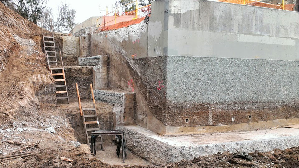 11/7/13 — Palms Station's rear retaining wall and stairway are taking shape.
