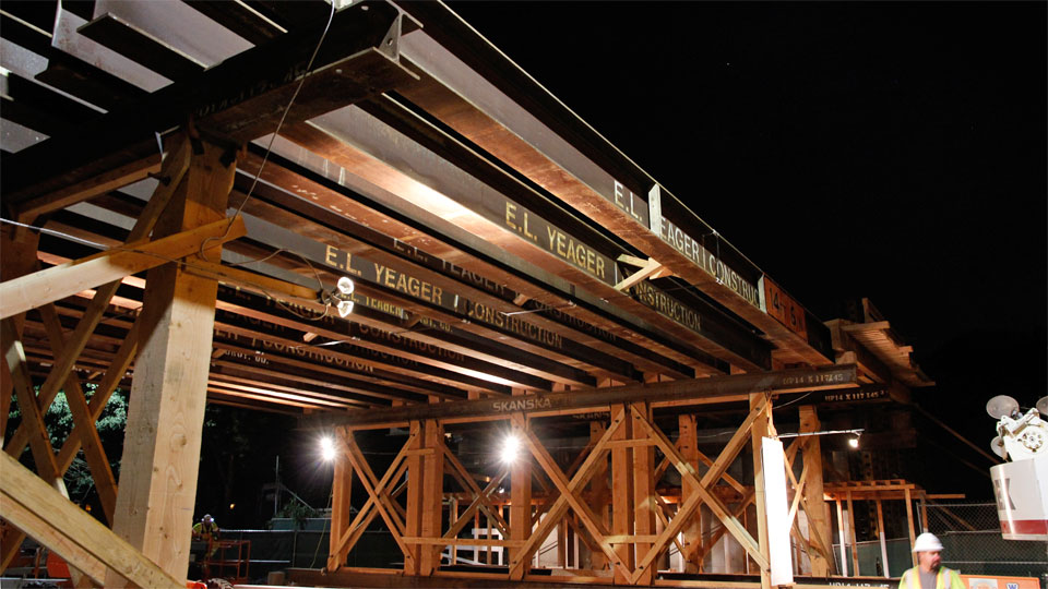 5/15/13 — The handsome National bridge is ready to be lowered onto its supports.