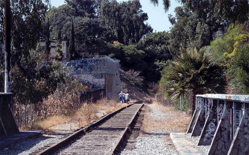 8/4/11 — Looking east toward the bridge (below) from the driveway up from National Boulevard to the right-of-way