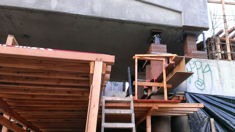 5/17/13 — A series of these small hydraulic jacks were used to lower the bridge onto its supports.