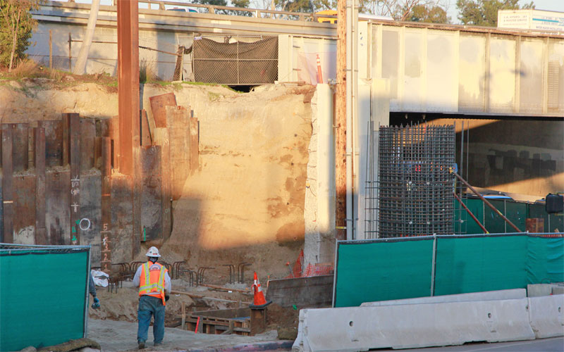 9/21/12 — Excavation for the Palms station is well underway, looking east toward the National underpass (above and detail below) and west (bottom).