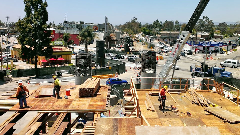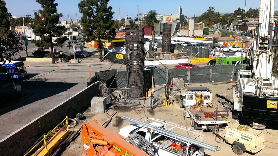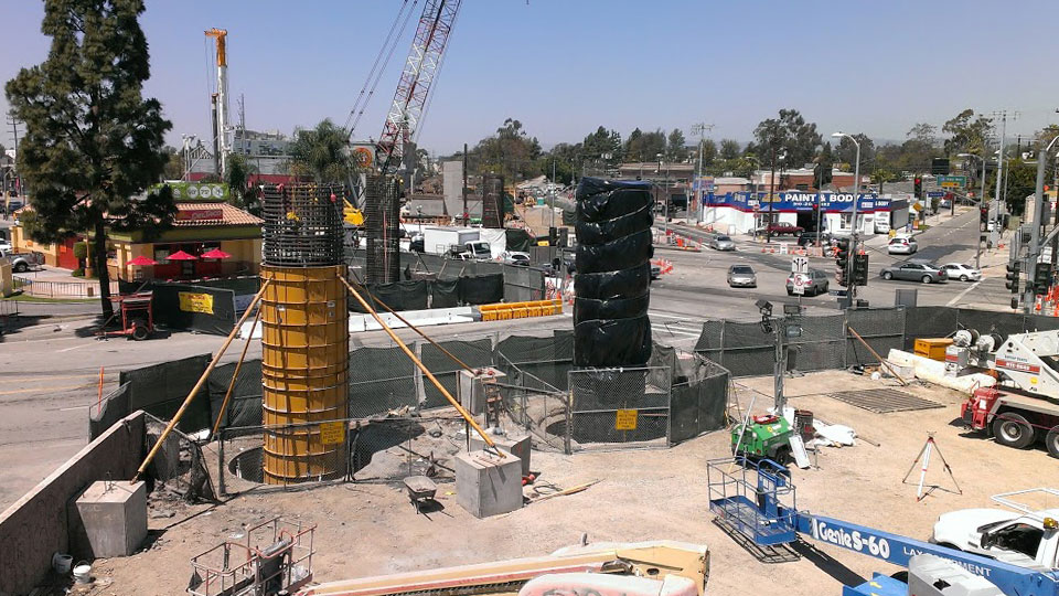 4/22/13 — Video of the big crane and drill moving to the middle of Venice Blvd. - like watching two elephants walk a tightrope! 4/17/13 — Video of one of the big rebar cages being delivered by truck (unlike Phase 1, where they were assembled on-site).