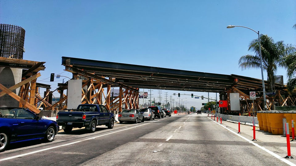 7/2/13 — Falsework is filled in except for the eastbound bridge over westbound Venice Blvd.