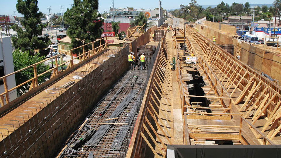8/12/13 — Forms and rebar are complete for the Venice Blvd. bridges' "stems and soffits" (sides and bottom).