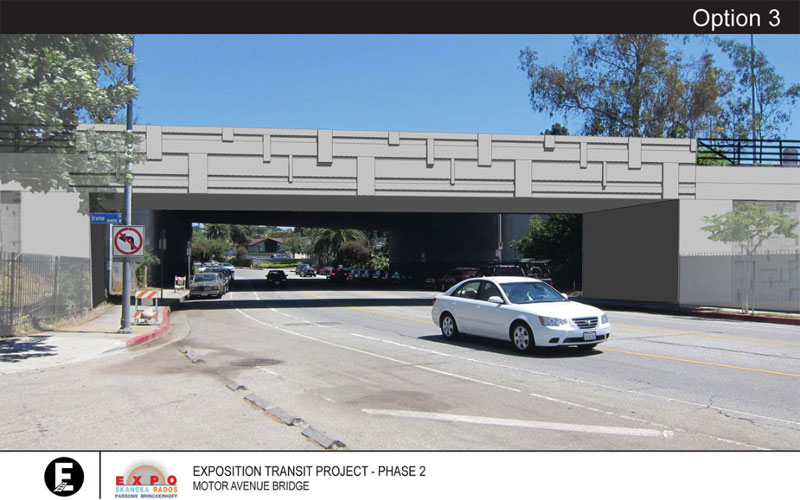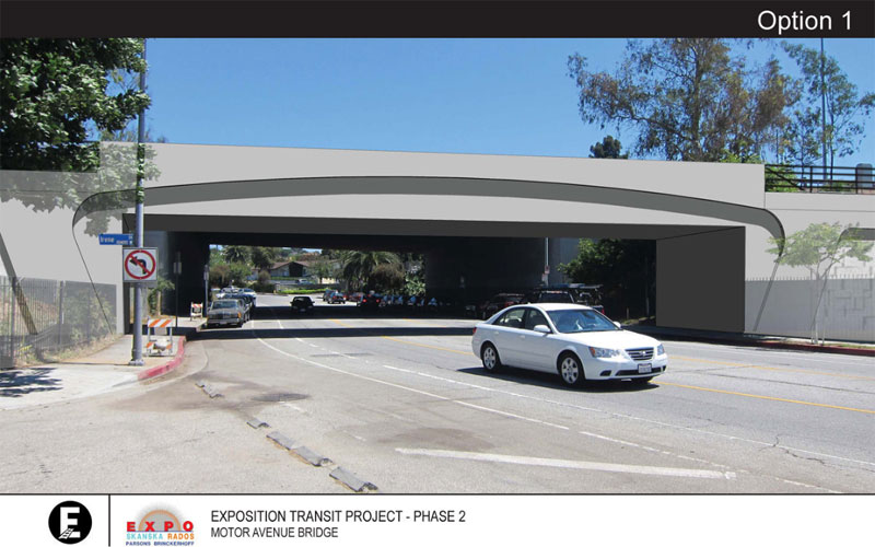 10/3/12 — These three potential designs for the new concrete bridge over Motor Avenue were posted on Curbed LA.