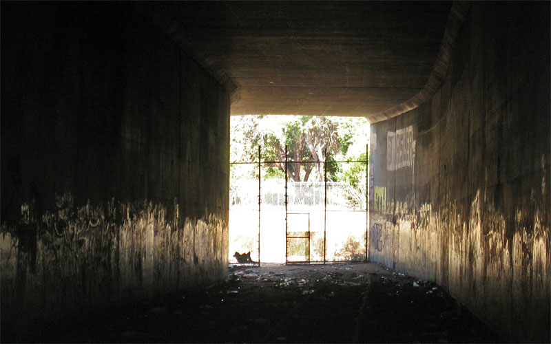 9/29/06 — The "tunnel" underpass below the Santa Monica Freeway, looking north toward Cheviot Hills.