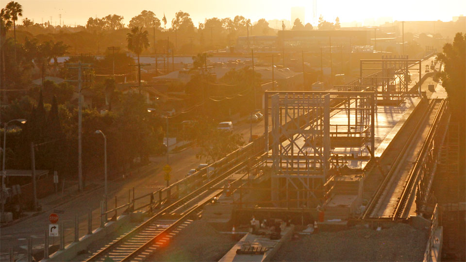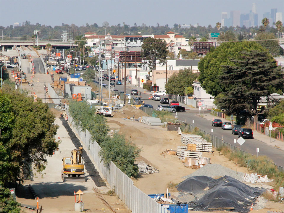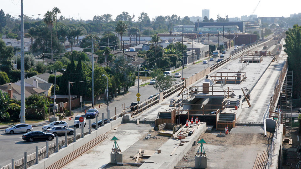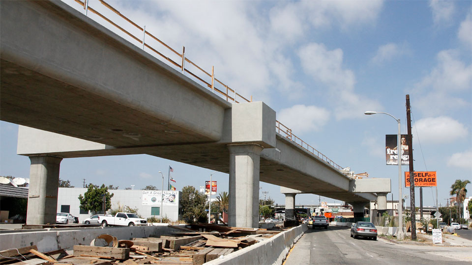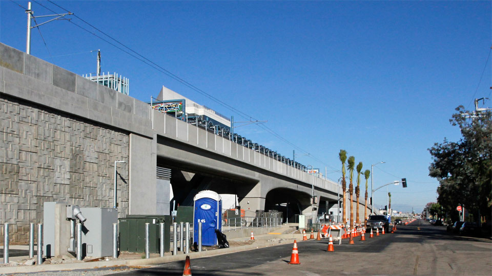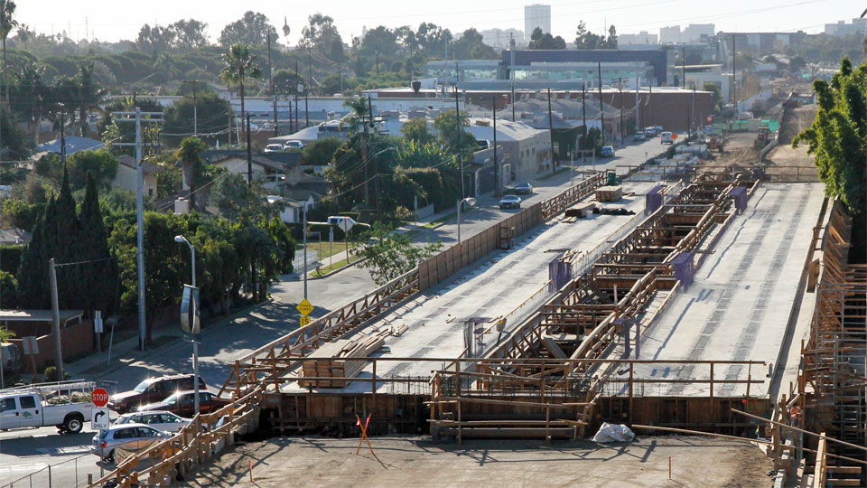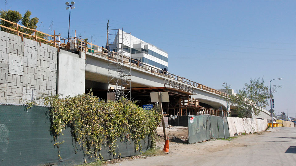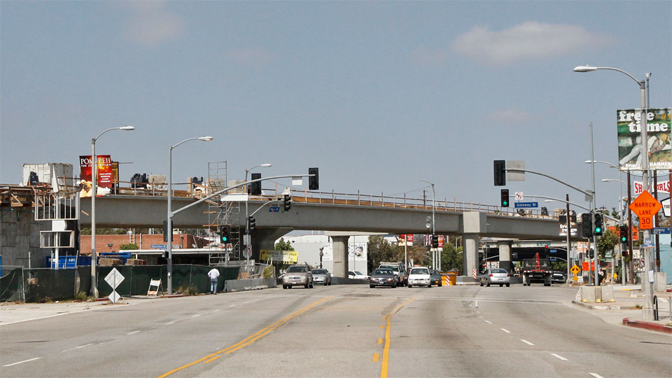 7/8/13 — Here's a Bundy Drive view of the bridge and station falsework and long shot looking east on Exposition.