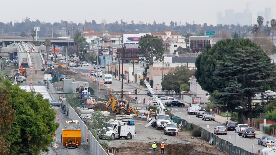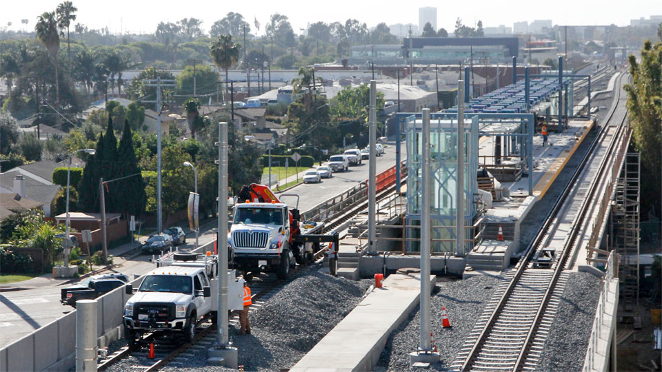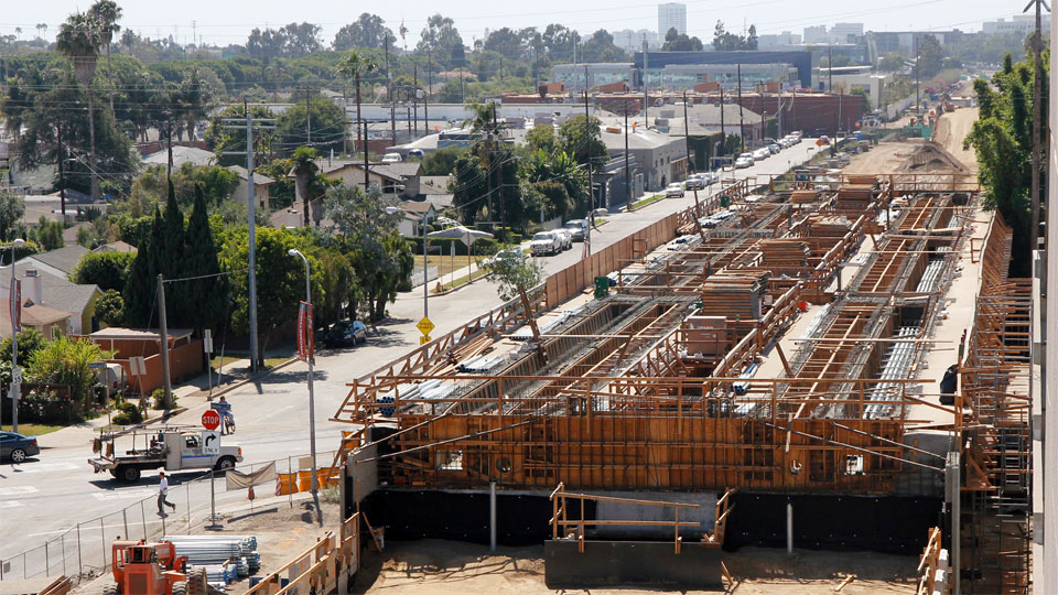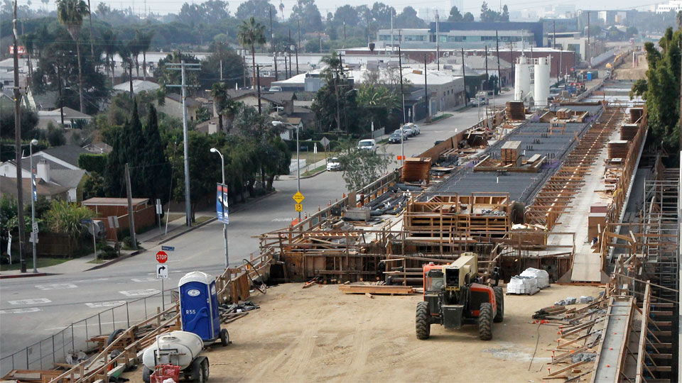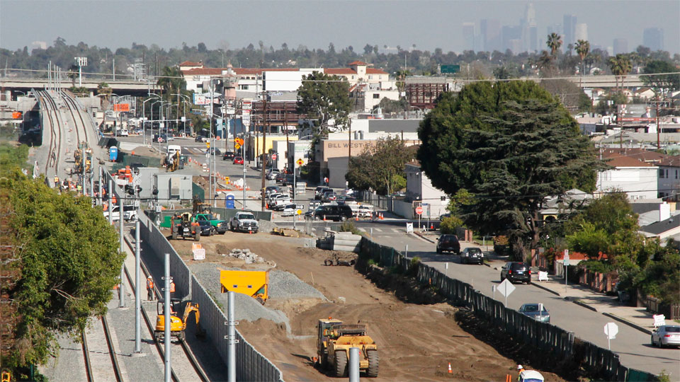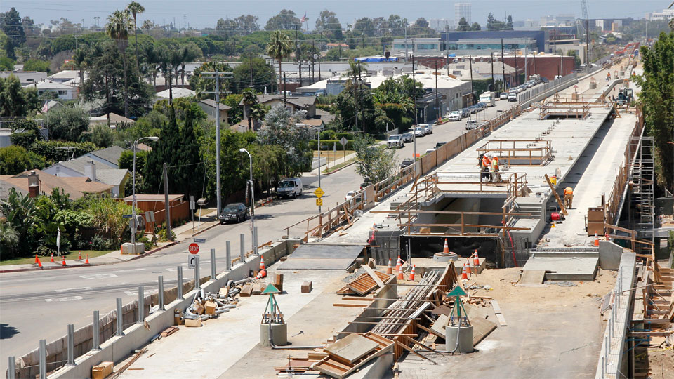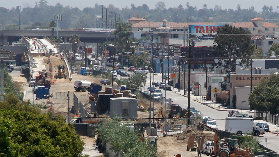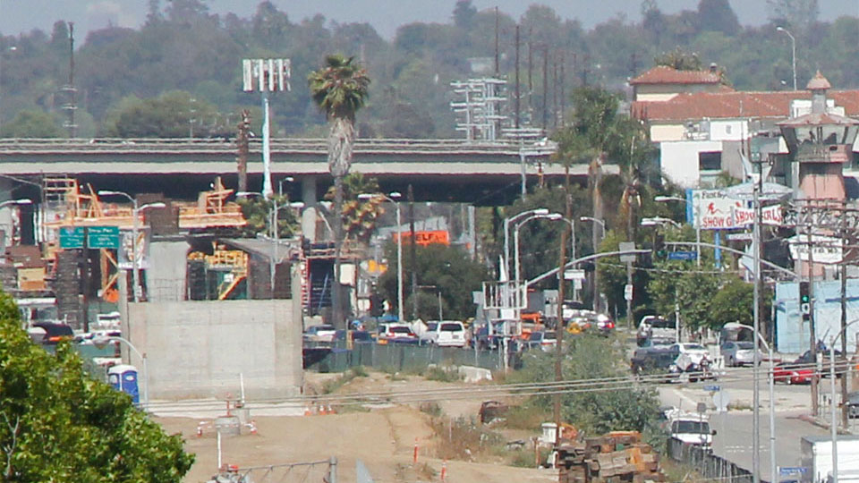 7/8/13 — Here's a Bundy Drive view of the bridge and station falsework and long shot looking east on Exposition.