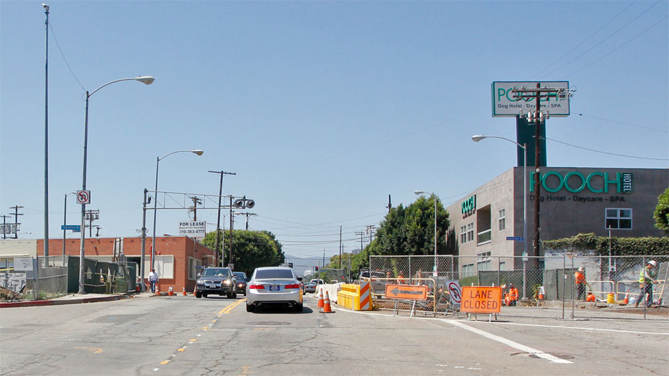 8/4/11 — Right-of-way on north side of Exposition Boulevard, converging on Pico Boulevard