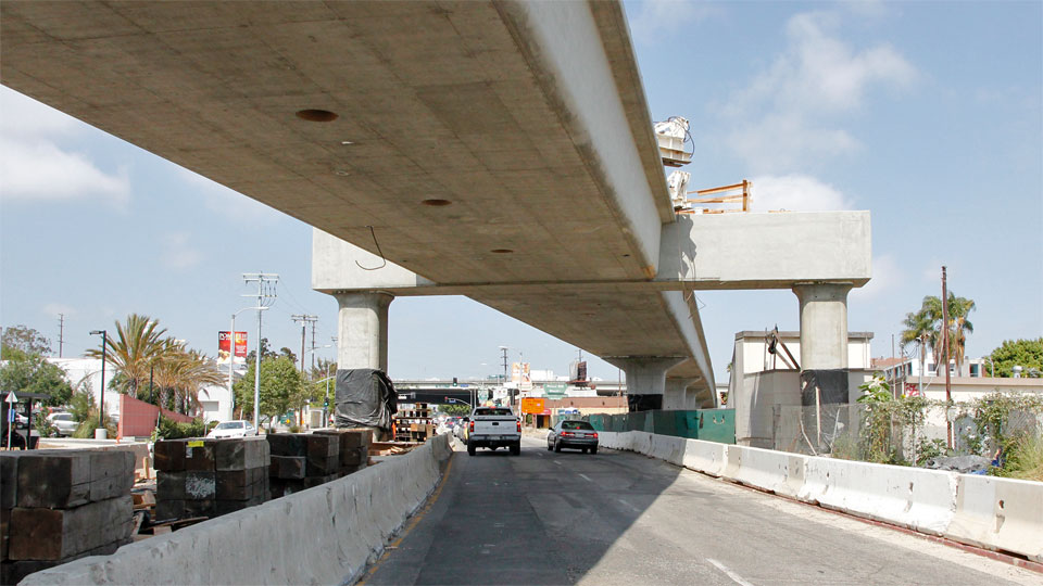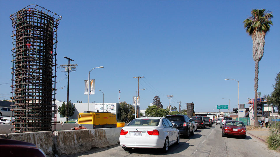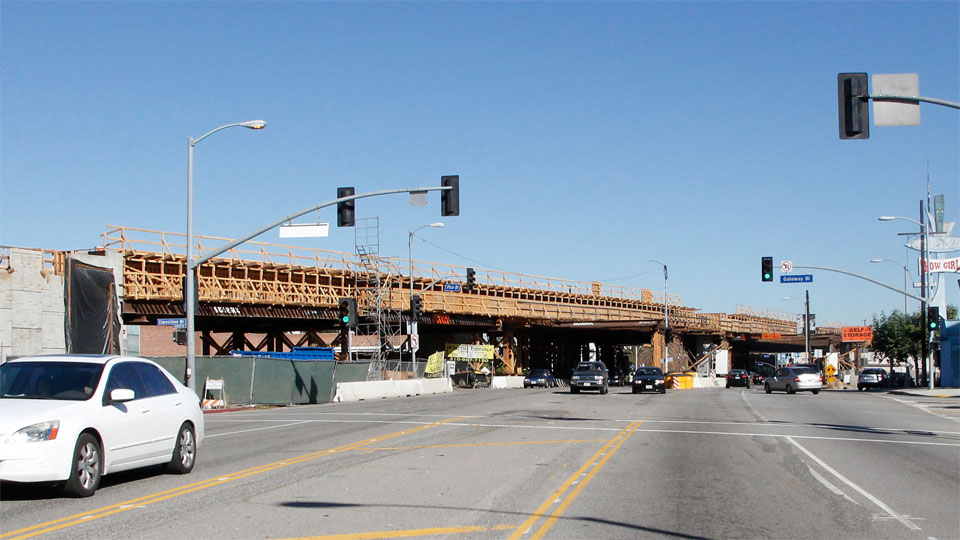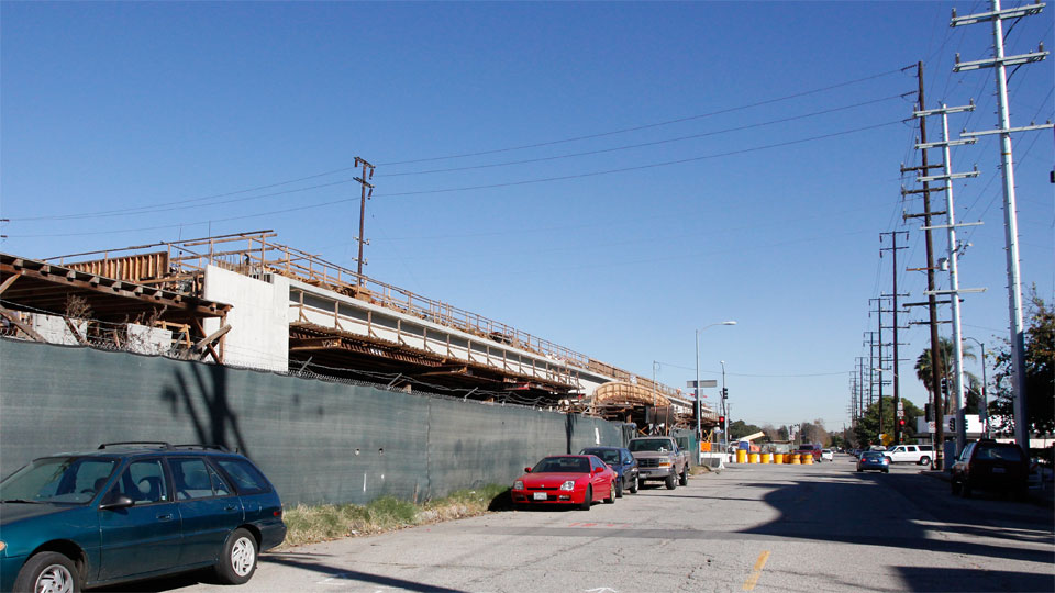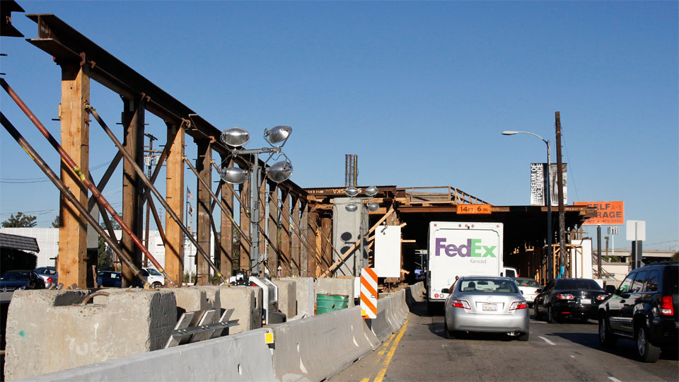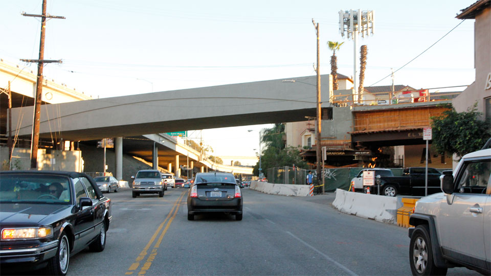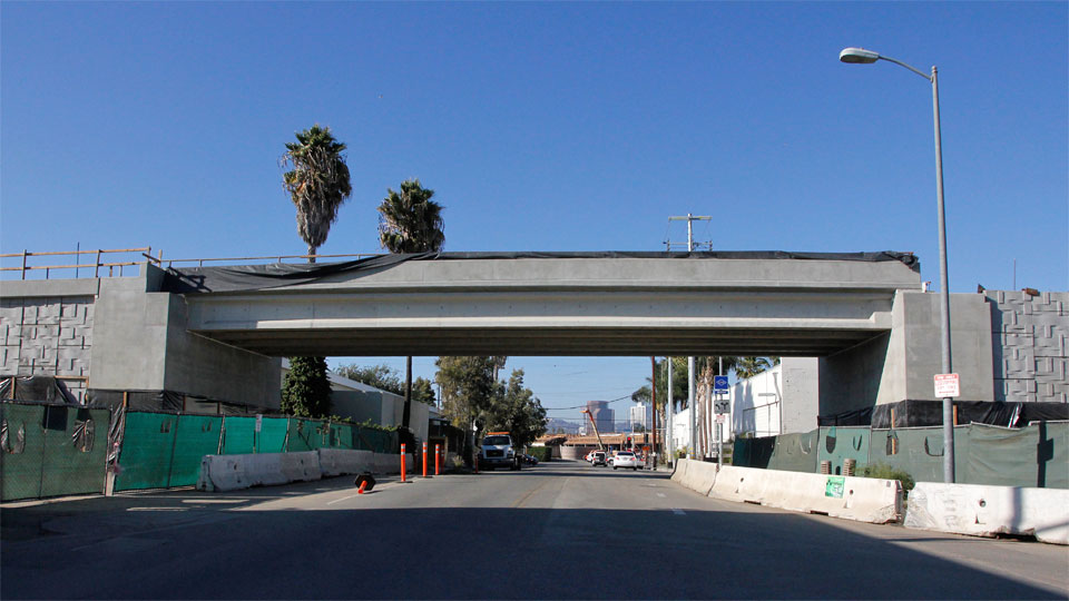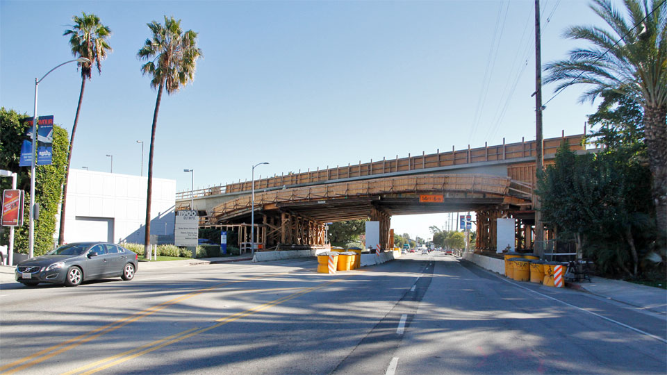Bridges over Pico, Sawtelle, and Sepulveda. Note the existing I-405 freeway bridge just to the right of the through-girder at Sawtelle.