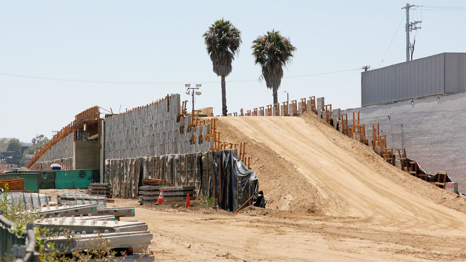 And you can see the MSE wall for the ramp west of the Sepulveda bridge
