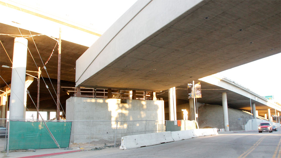 12/26/13 — Side forms are off the Bundy Drive (above) and Sepulveda Blvd. (below) bridges - the two aerial stations - but falsework remains.