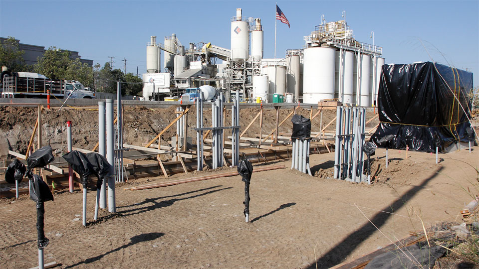 9/18/13 — Forms for the Sawtelle bridge are well underway (above), and conduit for the substation east of the 405 is in place by the concrete plant (below).