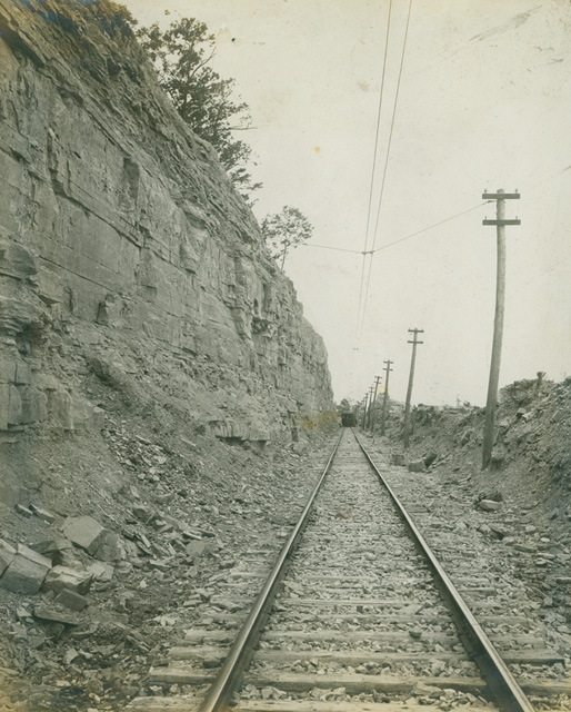 The right of way of the B&H as it climbs the escarpment. (Photo courtesy of the Hamilton Public Library, Local History & Archives)