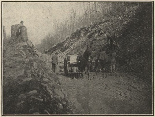 A construction crew cutting through the escarpment at the top of the grade near today's Scenic Dr.