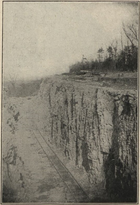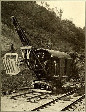 An electric steamshovel used by a contractor to remove rock during construction. (Photo from the Jan 2, 1909 edition of the Electric Railway Journal, pg 11)