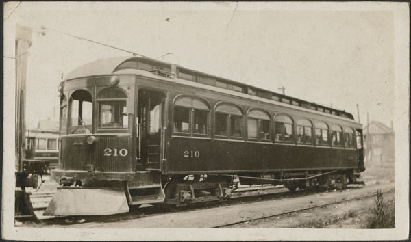 B&H #210 at Sanford yard, date unknown. B&H #210 was destroyed on March 17, 1923 when a sagging power line under the CNR overpass in Cainsville brushed the heater’s exhaust pipe, creating a short circuit and setting the car on fire. However, the trucks were salvaged, and were later used in the construction of B&H #240. (Photo courtesy of Library and Archives Canada, used with permission)