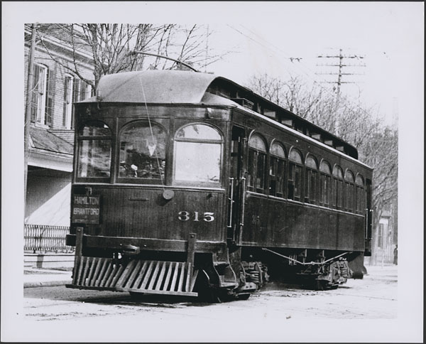 B&H #315 at the Ancaster stop, circa 1909. (From the Ross Gray collection, used with permission)