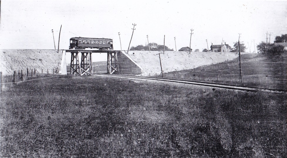 A B&H car crosses over the TH&B just north of Cainsville in the Summer of 1908. This photo appeared in an article in the Jan 2, 1909 issue of the Electric Railway Journal. (From the Sirman collection, used with permission)