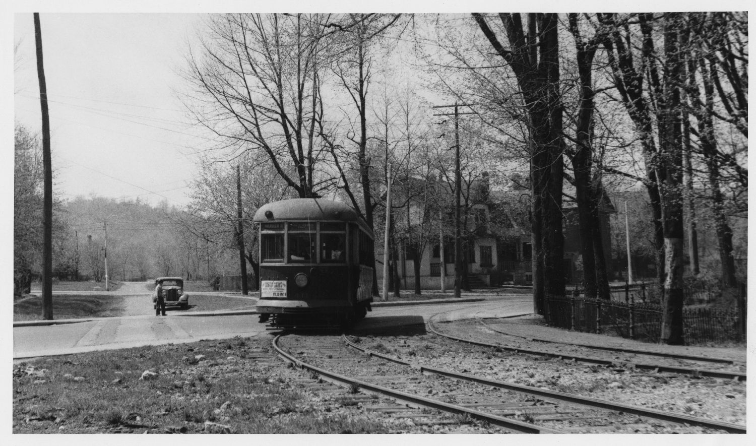 HSR #411 at Queen and Aberdeen in Spring 1941. On the left is the former right of way of the B&H (Photo courtesy of Library and Archives Canada, used with permission)