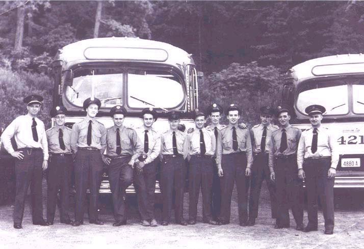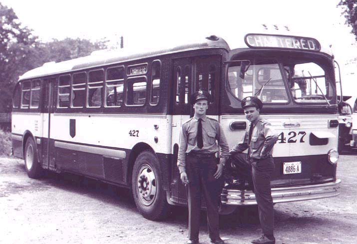 HSR #427 at Chedoke Golf Course, 1956. The two gentlemen in front are both HSR drivers, anyone recognize them? (Photo by John Dowling, used with permission)