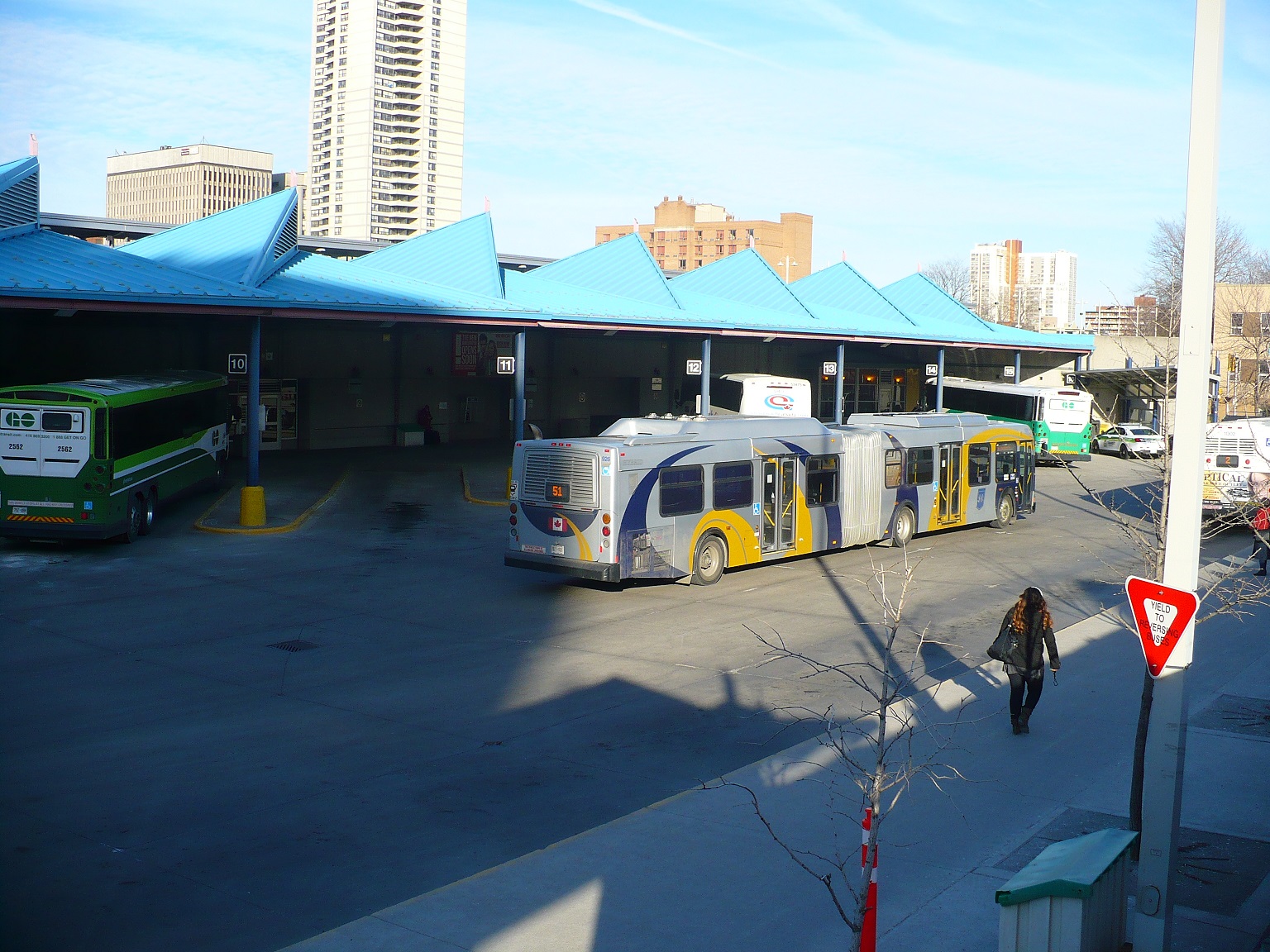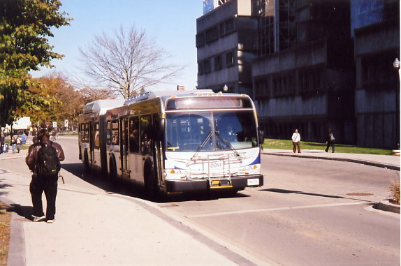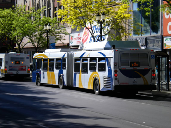The DE60LFR (Diesel-Electric, 60 ft long, Low Floor Restyled) is a hybrid articulated bus, also known to Hamiltonians as a bendy bus. This was the first articulated bus that the HSR had purchased since the second batch of TA60-102Ns were received back in 1987. Unveiled to the public at an official ceremony at Hamilton City Hall on Apr 3, 2007, the DE60LFRs were originally intended for use on the 10 BEELINE, but have appeared all over Hamilton.