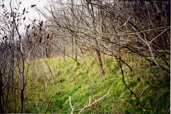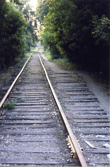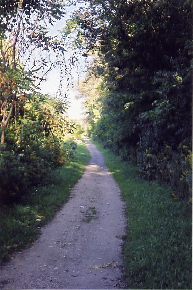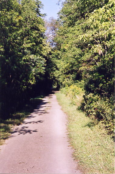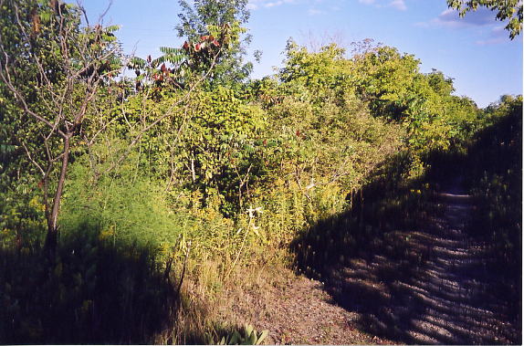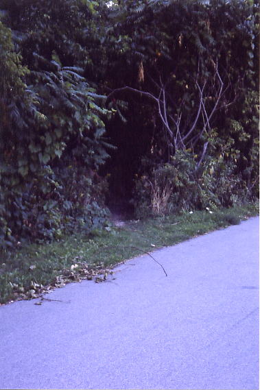 Still on the Bike Trail, just north of the bridge over Cootes drive. The roadbed breaks away from the bike trail opposite of the third streetlight north of the bridge, and enters the woods, as shown.