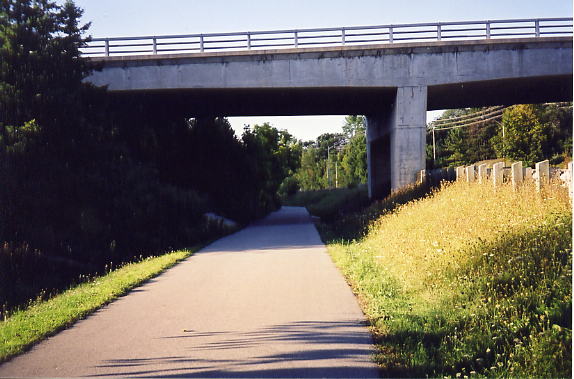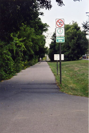 The Spencer Creek Trail now runs on top of the roadbed all the way to Dundas. Above are several shots (1,2,3,4) of the scenery along the Spencer Creek Trail. This portion of the line was straightened by the TH&B, as was the ajacent creek.