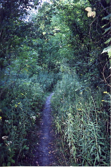 The roadbed skirts the edge of the baseball diamonds down near the parking lots. Anyone following this trail should watch out for Poison Ivy, but also keep an eye out for the plentiful wildlife in the area.