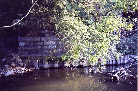After a few hundred metres, the roadbed reaches Ancaster Creek (also known as Coldwater or Black Creek). If you step to the edge of the river, you’ll see the old bridge footings in the middle of the river.